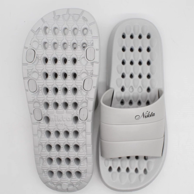 این دمپایی حمامی زیبا توسط برند نیکتا طراحی و تولید شده است. در ساخت این دمپایی حمام نیکتا از مواد جدیدی به نام ( EVA سافت ) و تکنولوژی روز دنیا استفاده شده است لذا این نسل از دمپایی های نیکتا به سری سافت معروف هستند. زیره بسیار سبک و نرم که در عین حال مقاومت سایشی بالاتری دارند. رویه این دمپایی ساحلی از جنس PVC نرم میباشد. زیره این دمپایی حمام یا دمپایی استخری به دلیل استفاده از متریال سافت و همچنین طراحی عاج دار در محیط های ساحلی و استخری و حمام لیز نمیخورد و همچنین جلبک را به خود جذب نمیکند لذا ضد جلبک میباشد.