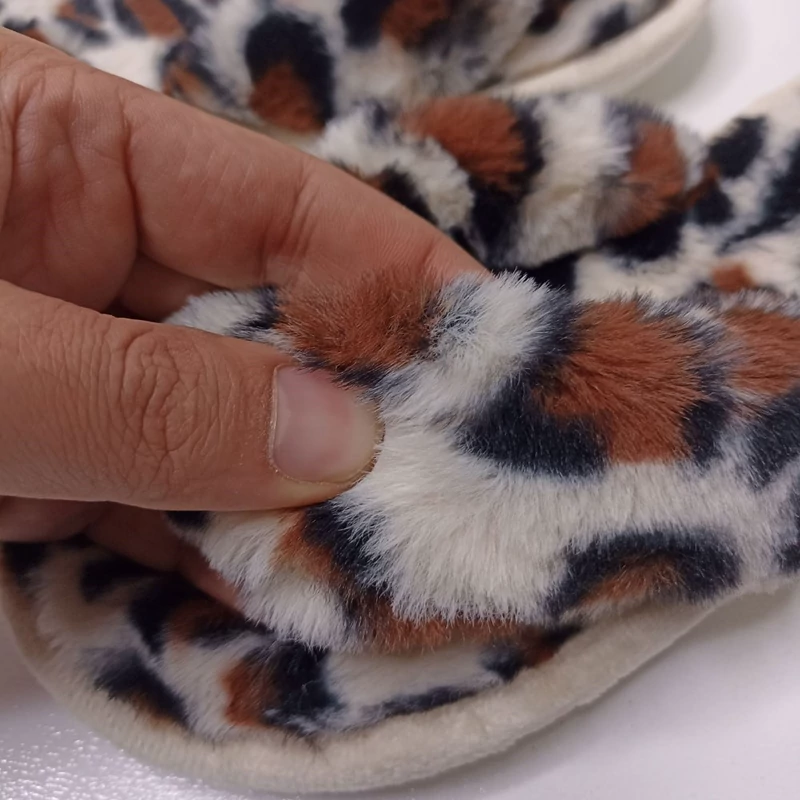 دمپایی لاانگشتی روفرشی پولیشی زنانه پاپا مدل مخمل پلنگی کد 1594