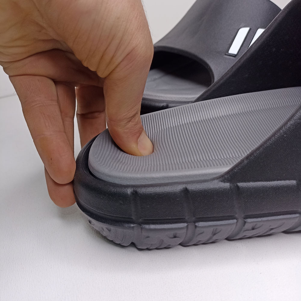 این دمپایی مردانه به صورت دو تکه تولید شده است و جنس بیرونی دمپایی از EVA مقاوم در برابر سایش و ضد لیز است. جنس کفی داخلی از EVA نرم و ژله ای است.