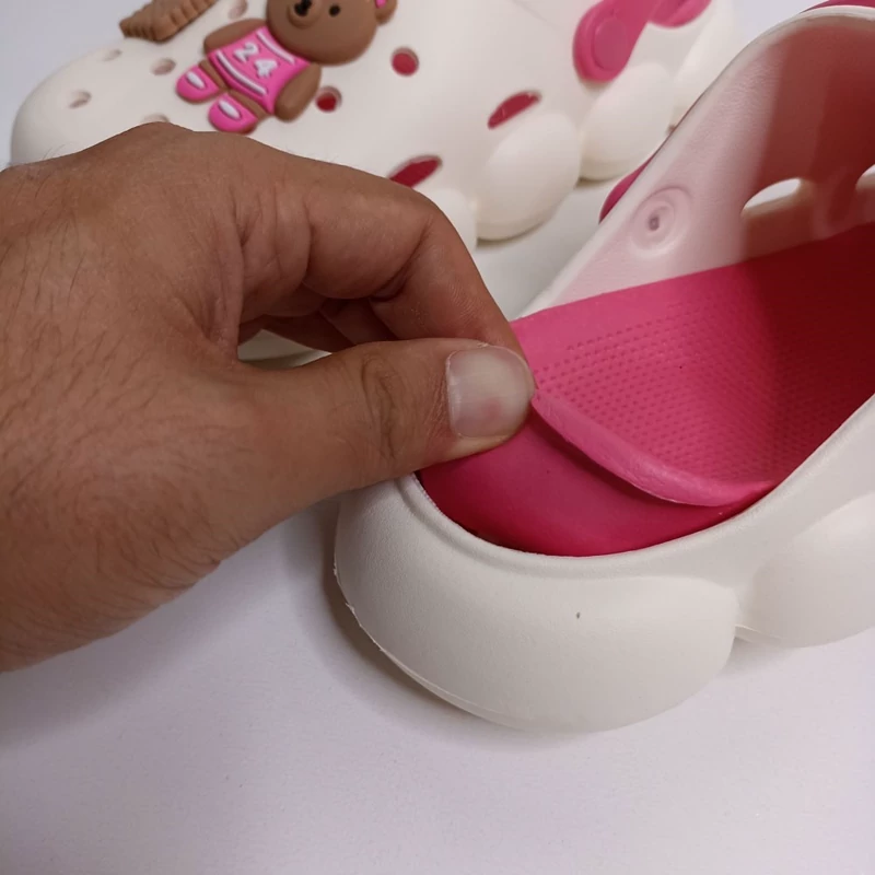 کراکس پایون مدل بیسکوئیت کد 1586 یک محصول بسیار با کیفیت، سبک و نرم است که از متریال EVA تولید شده است. در قسمت رویه این دمپایی استیکرهای برجسته پلاستیکی بسیار جذاب کار شده است. این صندل کراکس دارای یک بند انعطاف پذیر و کشسانی از جنس متریال اصلی دمپایی در قسمت پشت پا است که سبب میشود صندل از پا خارج نشود. به این مدل از دمپایی ها اصطلاحا دمپایی کراکس گفته میشود. این دمپایی کراکس گزینه مناسبی برای استفاده در محیط های داخلی به عنوان روفرشی و استفاده روزمره در محیط های بیرونی و مسافرت و ساحل میباشد. همچنین از این دمپایی بچگانه میتوان در محیط های مرطوب مانند حمام و سرویس بهداشتی و محیط های استخری استفاده کرد. زیره این محصول به دلیل آجدار بودن در قسمت کف در مقابل لغزش مقاوم است و جلبک به خود جذب نمیکند. در کف این دمپایی یک پد طبی فوق العاده نرم و راحت کار شده است. استفاده از متریال EVA در ساخت این محصول سبب شده که علاوه بر نرمی دارای وزن بسیار سبکی نیز باشد.